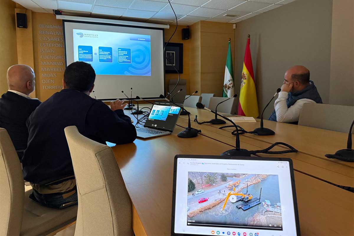 Nautilus Dragados ha mantenido un encuentro con Francisco Cerdán, delegado de Turismo y Playas, y Francisco Abel Carrasco Holgado, en la sede de la Mancomunidad de la Costa del Sol Occidental en Marbella. La reunión sirvió para presentar nuestras soluciones de dragado ecológico y establecer posibles actuaciones orientadas a la recuperación de playas y costas en el tramo occidental de la provincia de Málaga.